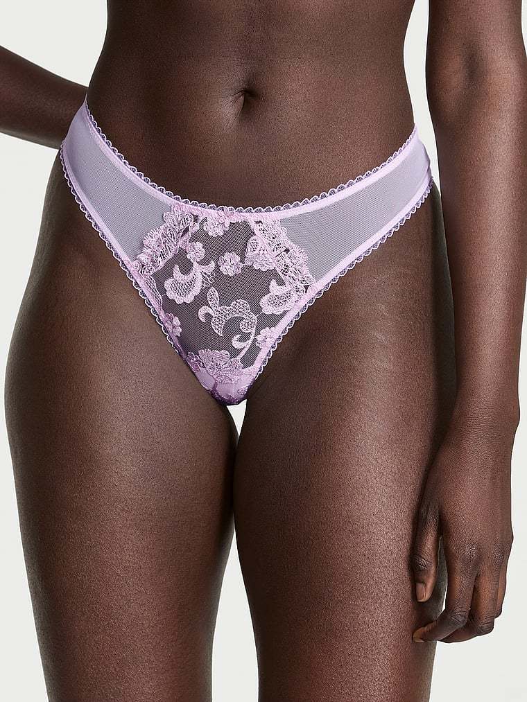 Dreamy, Swiss-designed embroidery with a distinctive boho vibe swirls across this tulle-mesh Thong.