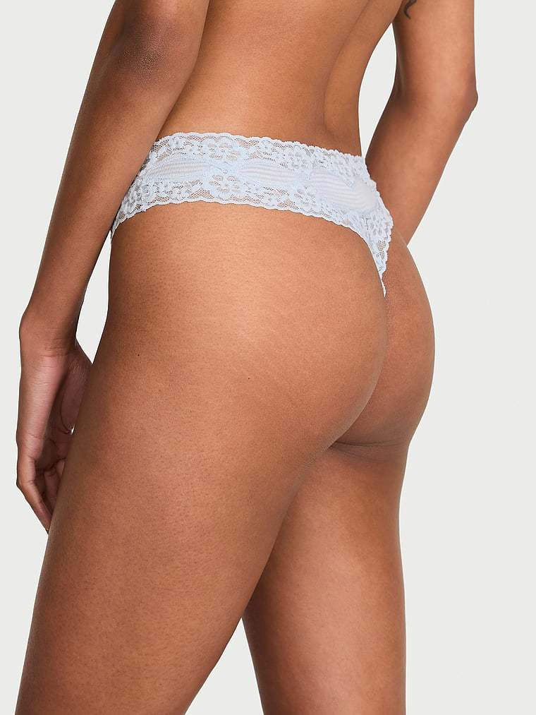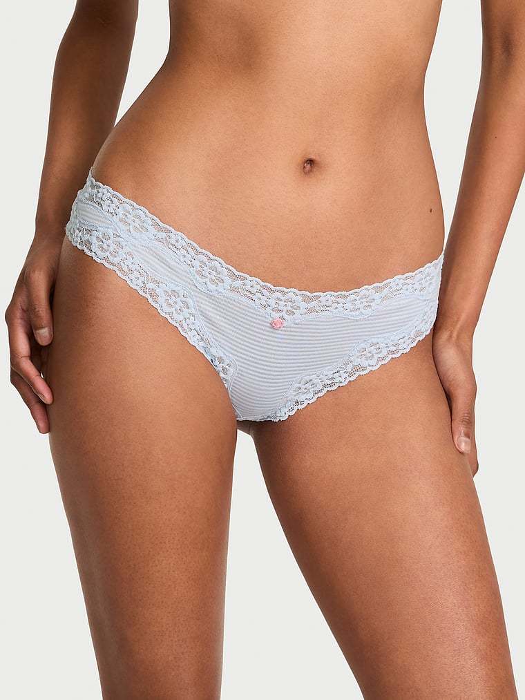 Crafted in a cool cotton blend with a subtle striped pattern, this Thong is trimmed all around with pretty lace and finished with a sweet, satin rosette.