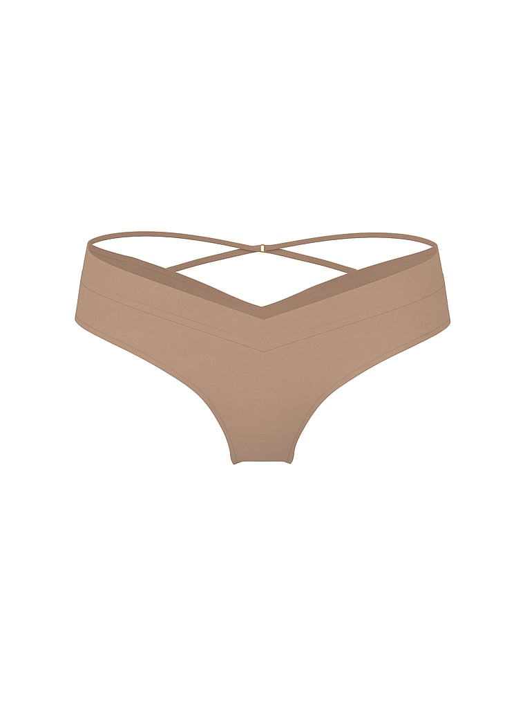 A touch of sexy stretch mesh in front and strappy back details upgrade this smooth, everyday pair.