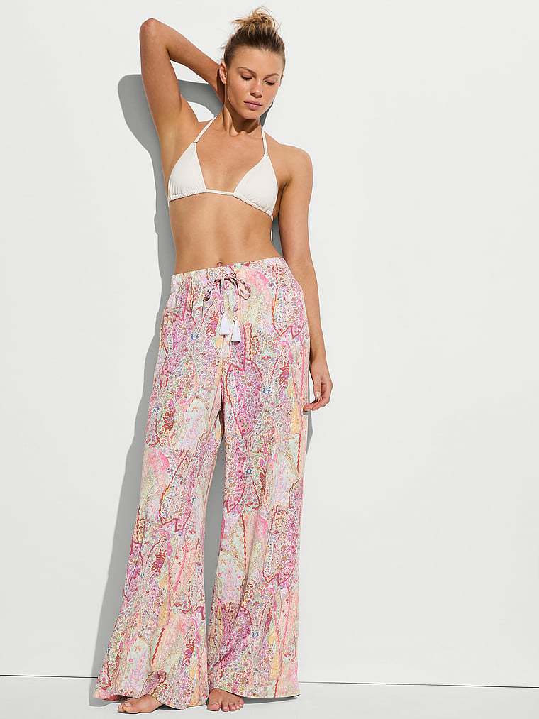 Go with the flow in wide-leg Pants with a silky feel and beautiful drape. They're perfect to pop on over your swimsuit by the pool, then pair with a cute crop Top for a day out.
