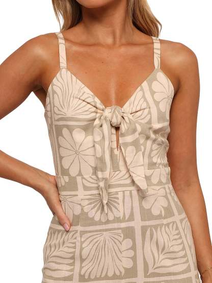 This effortless Jumpsuit is adorned in a vibrant pattern that’s reminiscent of summer gardens in bloom. A V-neckline with a self-tie detail adds an elevated finish. Pair with flat sandals if you're keeping it casual or opt for strappy heels for a dressed-up look.